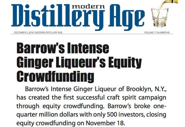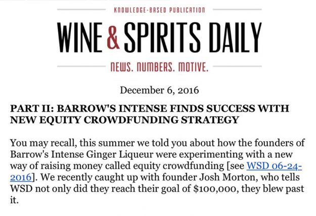 Barrow’s Intense has created the first successful craft spirit campaign through equity crowdfunding.
