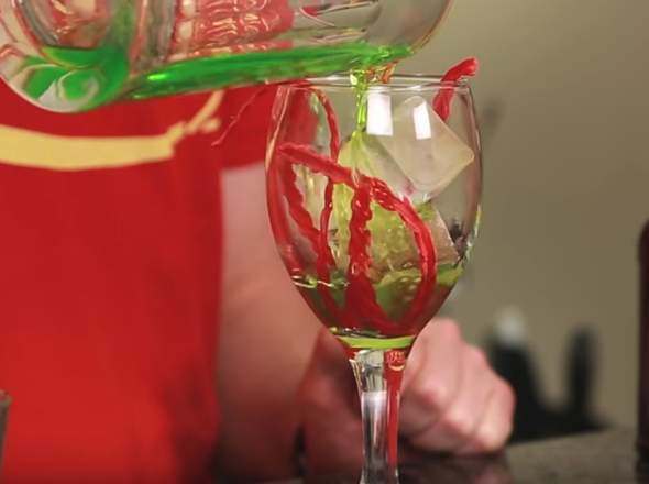 The Boozy Green Ghoul is a delicious combination of melon flavored Midori, Chartreuse, and ginger-flavored liqueur mixed into a ginger beer. Add this strong, colorful, and spooky drink to any Halloween cocktail menu.