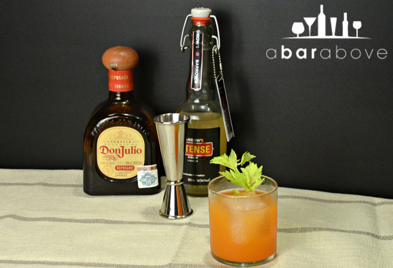 He chose tequila as the spirit – because I know he likes tequila when he’s looking to reinforce herbal, peppery qualities in cocktails. And to round out the heat, he added Barrows’ Intense – a spicy ginger liqueur that gave the drink one more layer of flavor and heat.
