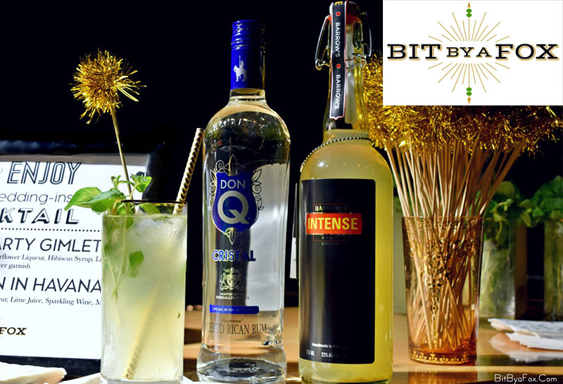 For our first dinner with wedding industry insiders, we made a vodka based gimlet with hibiscus syrup and elderflower liqueur and a ginger-y take on a mojito.