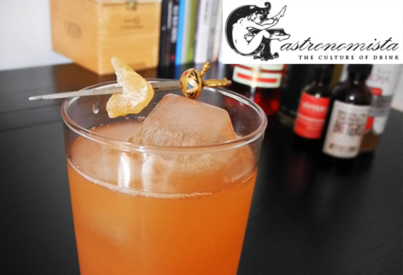 It’s made with Barrow’s Intense Ginger Liqueur – a Brooklyn made ginger spirit that is sweet and spicy! This cocktail is a remix of the Dark n’ Stormy, but instead of bitter molasses and ginger beer, I used Campari and GT’s Gingerade Kombucha.